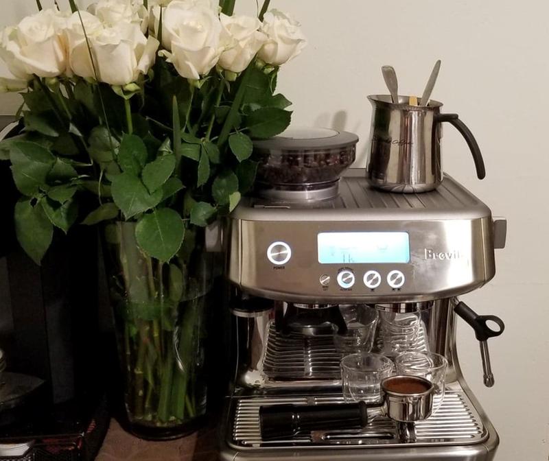 The breville barista express espresso machine grinds, doses and.